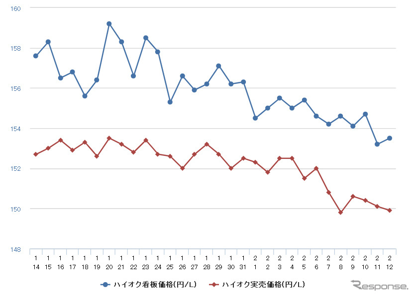 ガソリン価格急落 レギュラーは前週比1 2円安の150円 レスポンス Response Jp