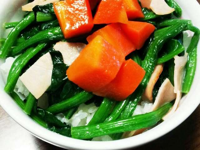 ほうれん草とニンジンの彩りソテー丼 レシピ 作り方 By 狐ト白ノ曼珠沙華 クックパッド