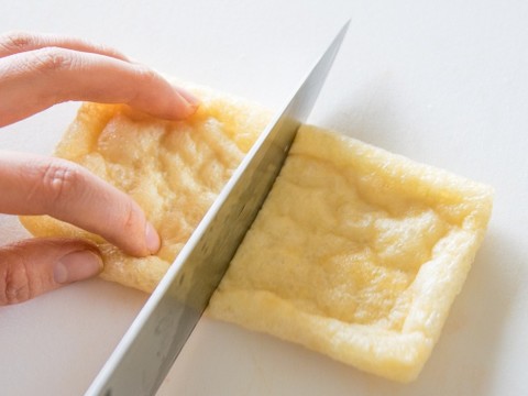 油揚げの切り方 味噌汁には短冊切りが人気 いなり寿司の切り方も紹介 やまでら くみこ のレシピ