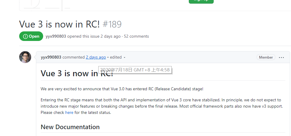 18号 尤雨溪宣布vue 3首个rc版本发布 这意味着 前端速报 二十次幂