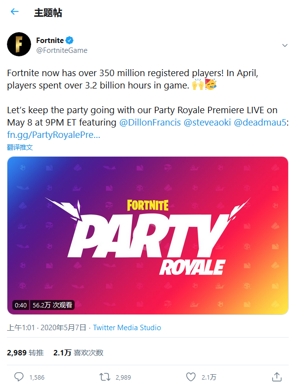 图 堡垒之夜注册玩家规模破3 5亿4月游戏时长超32亿个小时 堡垒 游戏时长 新浪科技 新浪网