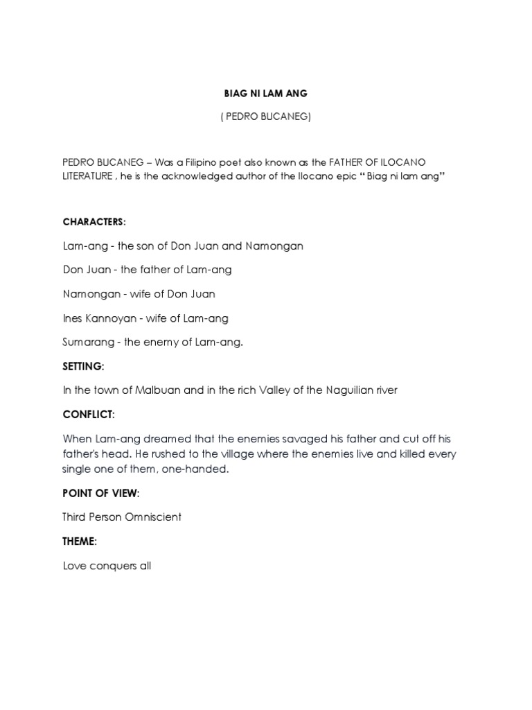 Biag Ni Lam Docx Biag Ni Lam Ang Summary Biag Ni Lam Ang Life Of Lam Ang Is Pre Hispanic Epic Poem Of The Ilocano People Of The Philippines The Story Course Hero